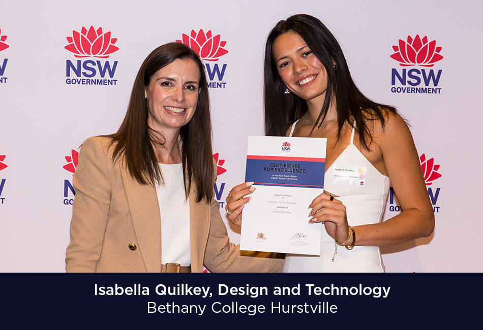 - Isabella Quilkey, Design and Technology, Bethany College Hurstville